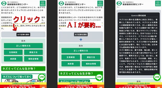 当社の提供する害獣駆除というサービスはとてもニッチなサービスで、利用するお客様のほとんどは様々な不安を抱えたまま電話で相談されることがほとんどです。少しでも当社のサービスを安心してご利用いただくためにAIを活用して簡単に害獣駆除というサービスを理解いただけるようにブログに機能を追加いたしました。