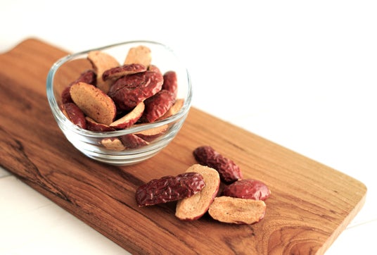 非常に糖度が高い高級品種の棗(灰棗)を使用し、油で揚げることもせず、添加物も一切使用しないことで、自然のままの甘さと食感を兼ね備えたヘルシーフードに仕上げています。