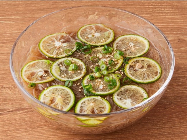 〆にもこだわり、和ティストでさっぱり!スダチが敷き詰められた冷麺や