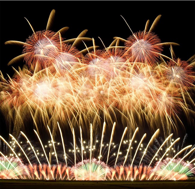 世界最先端打ち上げテクノロジーと高度な技術が必要とされる多重芯(たじゅうしん)花火や、時差式花火を使用。日本の「芸術花火」の未来をお見せします。