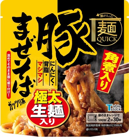 「暮らし美味しくストック」を掲げるテーブルストック株式会社(本社:山梨県甲州市/代表:中村桂)は、電子レンジで温めるだけの本格派超インスタント麺「麺QUICK」シリーズより、「麺QUICK 角煮入り豚まぜそば」を新発売します。本商品は10月4日(火)より、全国のコンビニエンスストア*1、公式サイト、Amazonにて購入いただけます。