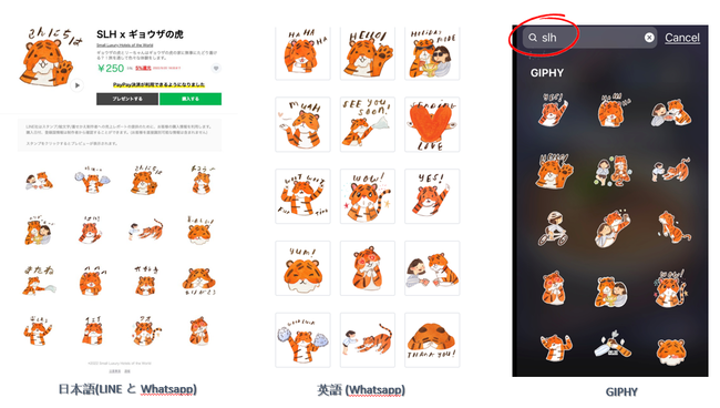 GIPHY(ギッフィー)ステッカー:インスタグラム・ストーリーズで「slh」を検索またはこちらのリンクにてhttps://giphy.com/bookoflai/dumpling-the-tiger