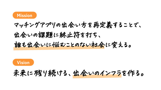 誰も出会いに悩むことのない社会を実現するため、ミッション・ビジョンを刷新