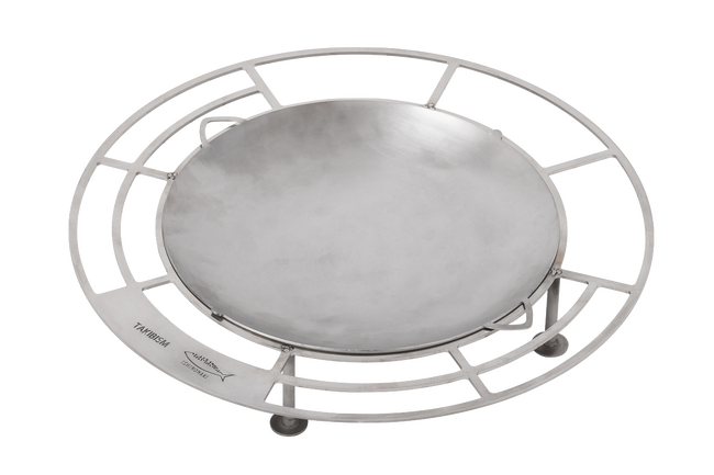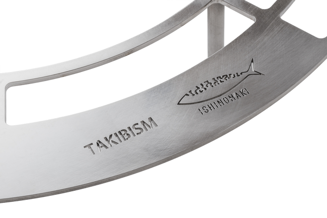 新焚き火台は、TAKIBISM JIKABI Mのコンセプトを受け継ぎつつ、本体フレームに金華サバをモチーフにしたロゴマークを配し、またフレームを追加することにより、ヤカンや石などをより多く配置することができるようになっています。金華サバロゴの微細部分(背中)は最小0.2mmの精度でカットされており、三和工業株式会社(以下、三和工業)の持つ金属加工のノウハウと最新設備がフル活用されています。
