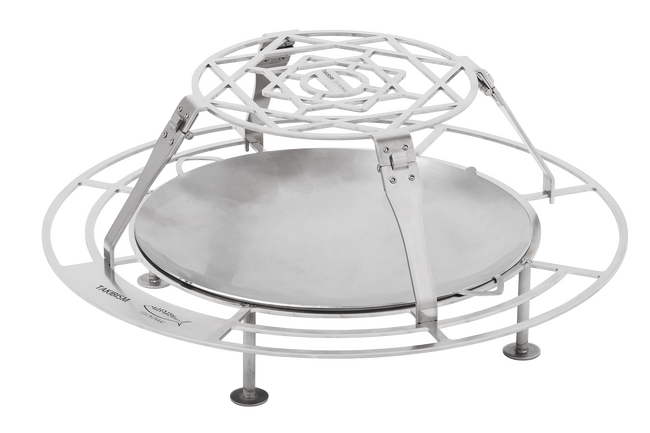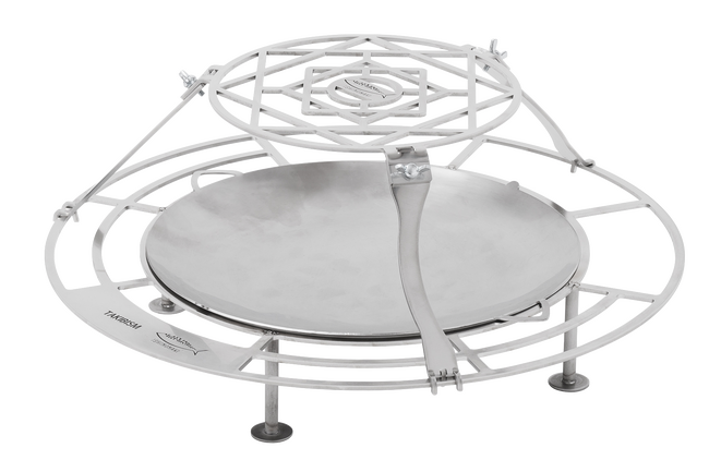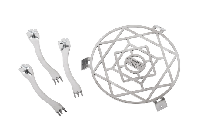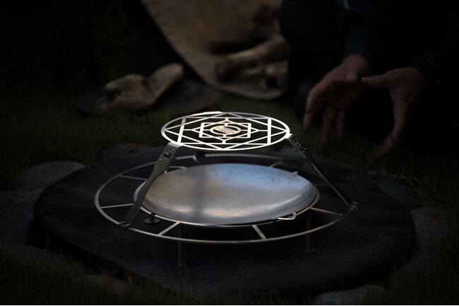 五徳は三和工業の職人の発案によりデザインされたプロジェクトのオリジナルモデルです。耐荷重が10kgと重たいヤカンや鍋を組み合わせる楽しさをプラスできます。脚部がネジ留め式と折りたたみ式の二種をラインナップしています。どちらも簡単に焚火台からの取り外しが可能。収納時はコンパクトになり、本体内にすっぽり収納できます。
