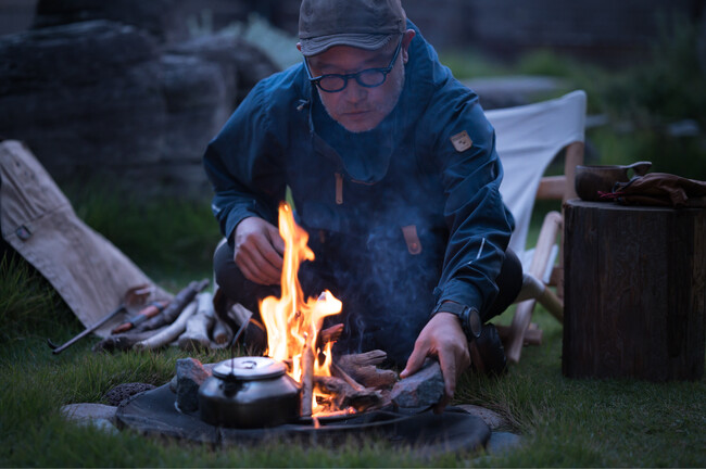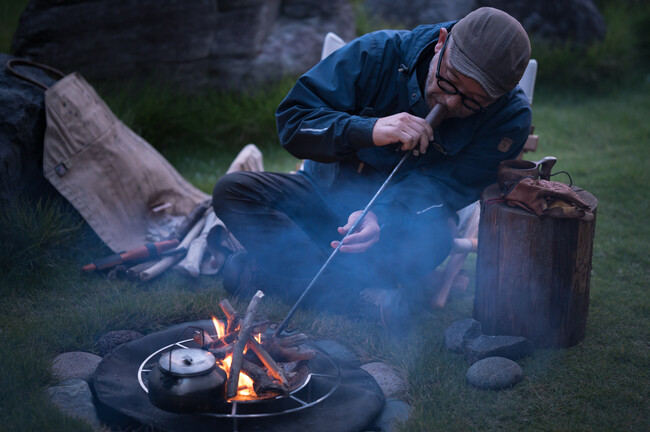 (写真)焚火台:TAKIBISM JIKABI M ISHINOMAKIおよび寒川一氏による使用風景