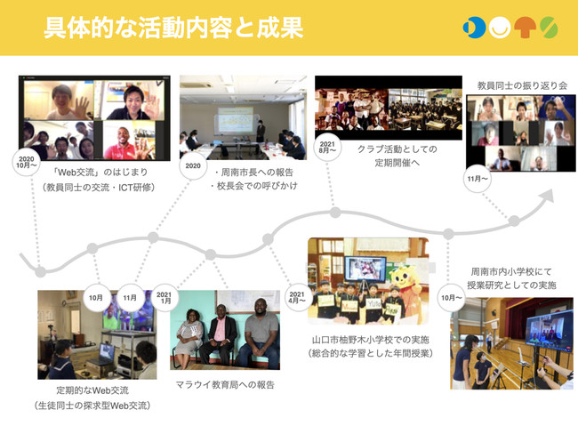 2020年度より、Colorbathの本拠地である周南市内の小中学校・教育委員会と連携した活動を開始。校長会でのご説明や、外国語担当教諭への研修、交流プログラムの見学など、様々な機会を通して、DOTSの普及に取り組んできました。