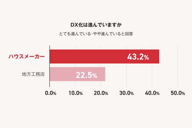また、DX化ではハウスメーカーと比べて、地域工務店が2倍程度遅れていることが浮き彫りとなりました。