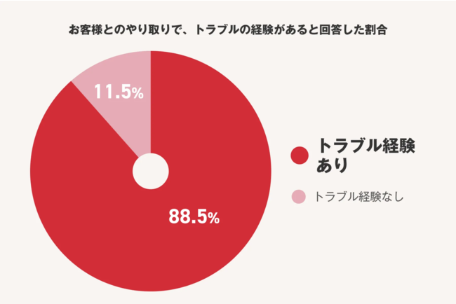 全体の88.5%はお客様とのやり取りでトラブルを経験しており、トラブルを防ぐために、「今以上にお客様との丁寧で正確なコミュニケーションが必要」と考えている方は90.8%に上りました。