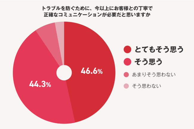 全体の88.5%はお客様とのやり取りでトラブルを経験しており、トラブルを防ぐために、「今以上にお客様との丁寧で正確なコミュニケーション」が必要と考えている方は90.8%に上りました。