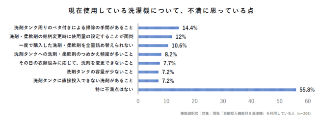 ・自動投入機能付き洗濯機保有者の55.8%に不満点がない