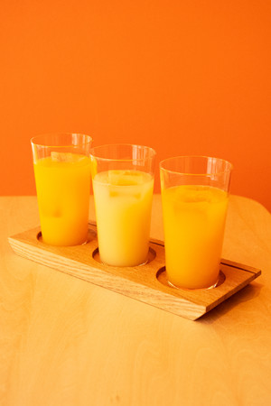 日中は、ジューススタンドとして、尾道市のなかでも特に柑橘の栽培が盛んな瀬戸田産の柑橘ジ ュースを13種類用意。お店では、そのなかから常時3種類をビールタップから提供いたします。
