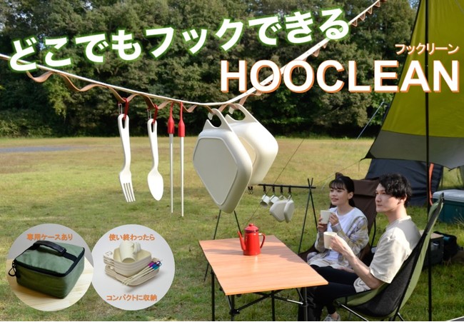 「ロープに直接吊して干せる衛生的でサステナブルなキャンピングテーブルウェア【HOOCLEAN】」