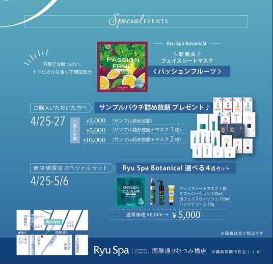 株式会社ポイントピュール(本社:沖縄県久米島、代表取締役:大道 敦)が展開するスキンケアブランド「Ryu Spa」は、2025年4月25日(金)、那覇市・国際通りむつみ橋エリアに新店舗をオープン。