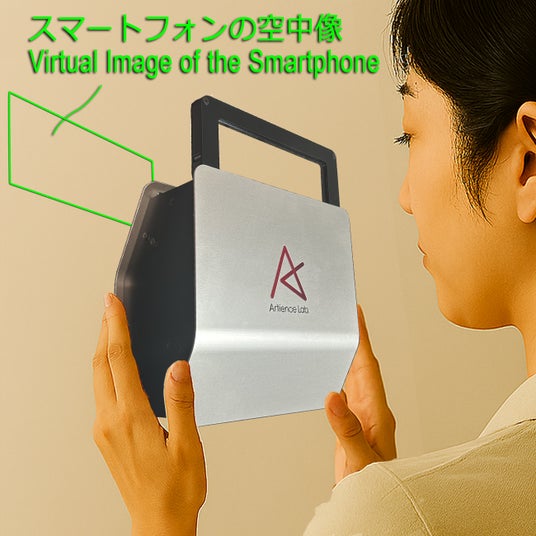 既存のスマートフォンに表示した動画像を、一般的な透明な板を介して空中に浮かび上がらせるこのプロトタイプは、手軽に現実世界と重ねて表示(AR)できるほか、目の焦点調節がしづらい方にとっても画像を見やすい距離に表示できるため、視力サポートとしての応用も期待できます。
