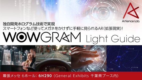 株式会社アーティエンス・ラボ(代表取締役:白倉 明、本社:千葉県茂原市)は、メガネやゴーグルを一切必要としない、革新的なホログラム技術「WOWGRAM Light Guide Type D」を応用し、スマートフォンの映像を空中表示するARプロトタイプを世界で初めて開発しました(※1)。