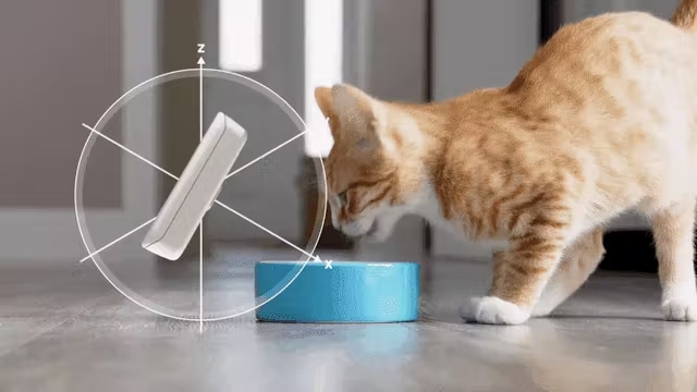 スマホと同スペックの高精度9軸センサー※1を採用。トイレ、食事、水飲みなどの回数、活動量※2をチェックし、ペットの「いつもと違う」を察知します。