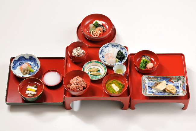華やかな料理を盛り付ける皿や鉢は、伊万里焼が中心。ご飯や汁物は、堅牢な輪島漆器が使われている。