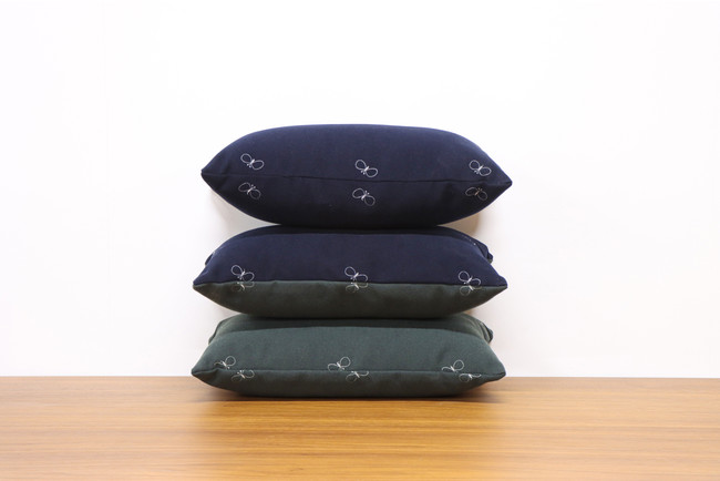 横長クッションのカラーは3種になります。特におすすめは片面インディゴ/片面ダークグリン。表と裏で色を変えることにより気分や使用する場所で表になる色を変えることができます。
