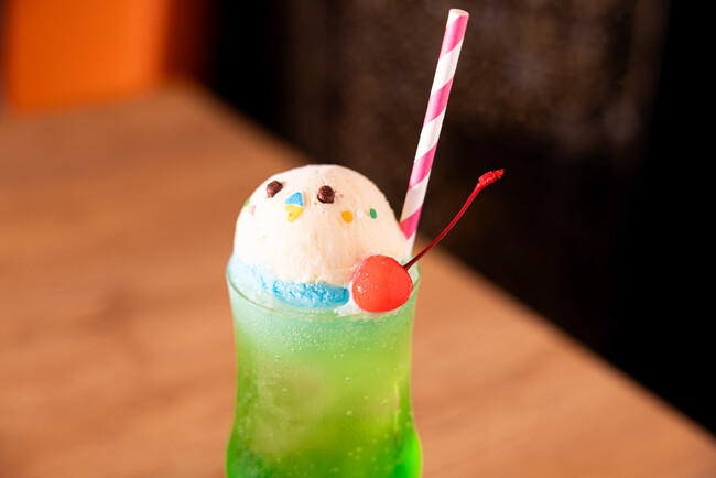 有村藍里さんが飼っているセキセイインコの”あいる”をイメージしたメロンクリームソーダです。