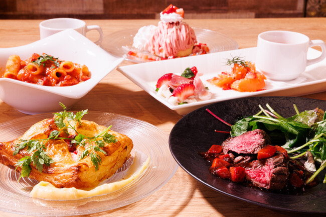 いちごもちのイラストをイメージして可愛らしさとアンニュイな雰囲気、そして全ての料理にいちごを使用して作り上げました。単品、コース仕立てのどちらでも対応可能となっております。