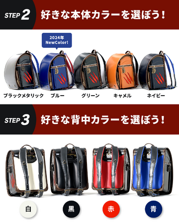 2.好きな本体カラーを5色(キャメル・ブラックメタリック・グリーン・ネイビー・ブルー)から選んでください。