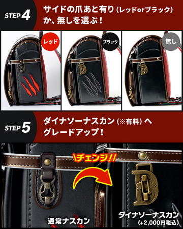 4.サイドの恐竜の爪あと刺繍を(レッド・ブラック・無し)と選べます。