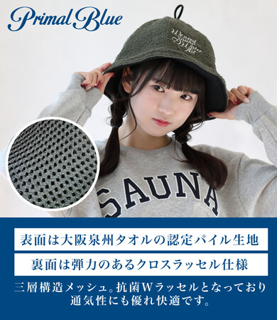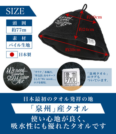 約130年の歴史と伝統を誇るタオル産地である大阪泉州タオルを表面に使用した日本製サウナハットの