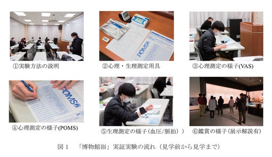 日本では、九州産業大学 緒方泉 特任教授が「博物館浴」の第一人者として全国各地で実証実験を行っています。博物館見学前後の⾎圧と心拍数を測ったり、心理テストを実施するなど、心身の状態の変化の調査を行い、これまで全国75館で開催し、1094人のデータが収集されています。