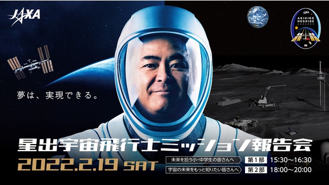 星出宇宙飛行士ミッション広報事務局は、2022年2月19日(土)※1にJAXAイベントライブ配信専用チャンネル(YouTube)で配信予定の、星出彰彦宇宙飛行士(以下、星出宇宙飛行士)による日本帰国後のイベント「星出宇宙飛行士ミッション報告会」のスペシャルゲスト、および同時開催する「星出宇宙飛行士ミッション報告会~バーチャルEXPO~」について、ご紹介いたします。