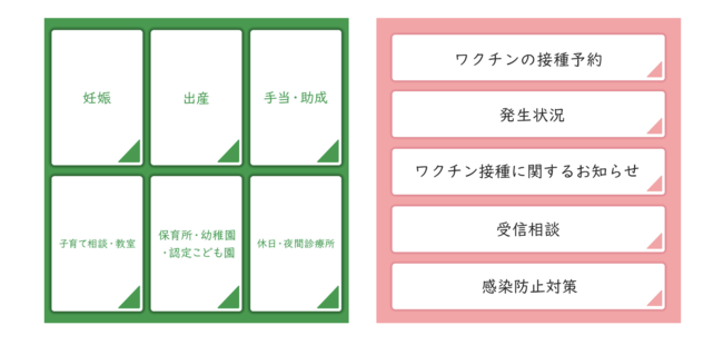 各種リッチメニューから選択しやすいように、カードタイプで調べたい内容を記載いたしました。直接、カードタイプのメニューをクリックすると、調べたい内容のページに移行できます。