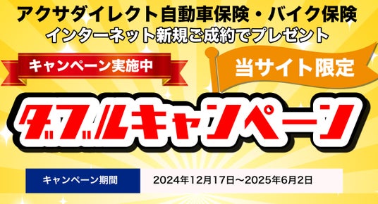 株式会社アスクは、2024年12月17日より「アクサダイレクト自動車保険・バイク保険のインターネット新規ご成約ダブルキャンペーン」を開始いたしました。