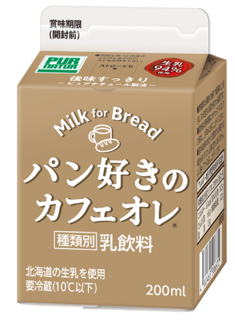 『パン好きシリーズ*2』は 2018 年の発売以来、多くのお客様にご好評をいただいており、この度、『パン好きのカフェオレ(R)』について、新パッケージを発売します。新パッケージは、500ml の屋根型タイプを小さくした容器となり、まずはベーカリー限定で販売を開始し、スーパー・コンビニエンスストアにつきましては来年度以降、順次販売します。