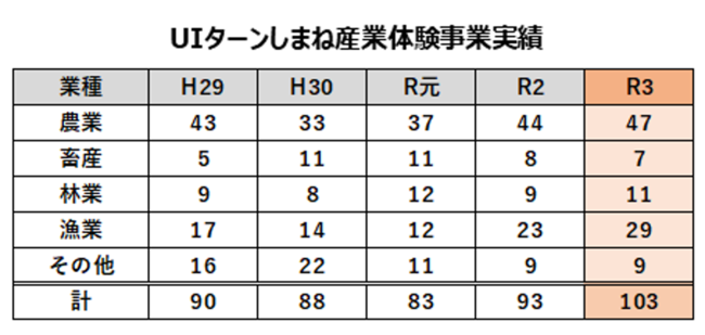 また、ふるさと島根定住財団が実施している第一次産業等の体験を希望する人が、20代~30代を中心に増加。2021年度は約20年ぶりに100件を超え、より自分らしい新たな働き方を求めて、多くの人々が島根に訪れています。