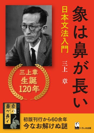 株式会社くろしお出版(東京都千代田区、代表取締役社長:岡野秀夫)は、日本語研究で知られる言語学者、三上章の生誕120年と、同氏の代表作『象は鼻が長い ―日本文法入門』が第40刷となるのを記念して、同書を全帯(ダブルカバー)の特別仕様で重版しました。