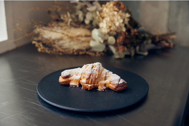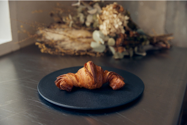 フランス産発酵バターと北海道産発酵バターをブレンドした香り豊かなクロワッサン。シェフこだわりの 12 層仕立てで、口説けが良いのが特徴