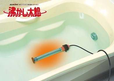 ●業界最大級の910Wの強力なステンレスカートリッジヒーターを使用し、容器や浴槽の底に沈めるだけで簡単に水からの湯沸かしや保温が可能。