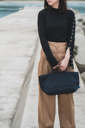 今回ギフトショーで発表をしたグランプリ受賞商品は船底をイメージしたものになっており、再生漁網生地との相性もストーリー性も高くなっている。シンプルなデザインの中に親会社である鞄製造メーカーが長年培ってきた地場産業である鞄製造技術を掛け合わせ、”サステナブルxモノづくりx地場産業”という取り組みを鞄を通して実現をした。