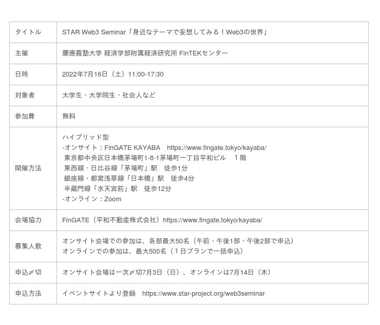 イベント申し込みページ:https://www.star-project.org/web3seminar