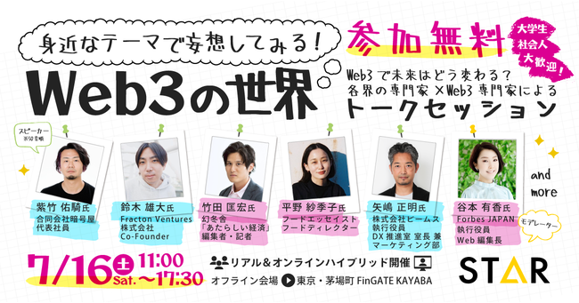 7/16 13:30-17:30 「食とWeb3の世界」「キャリアとWeb3の世界」「ファッションビジネスとWeb3の世界」他