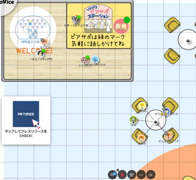 この『ふたごのひろば』は、24時間365日オープンしており、同時間帯に参加されている方と気軽に会話できるとともに、イベントスペースにてイベント開催も実施していく予定です。