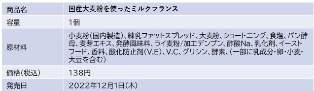 ウエルシア薬局株式会社(本社:東京都千代田区、代表取締役社長:松本 忠久、以下ウエルシア)は、プライベートブランド(以下PB)「からだWelcia・くらしWelcia」より、 国産大麦粉を使用し、生地とクリームにこだわった「国産大麦粉を使ったミルクフランス・生チョコクリーム」を、2022年12月1日より全国ウエルシア薬局にて発売します。※九州店舗と一部店舗は除く