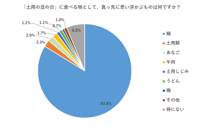 土用の丑の日といえば、鰻を想起する人が83.8%
