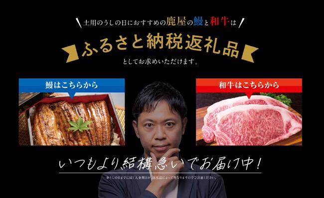 土用のうしの日におすすめの、鹿屋自慢の名産品である鰻と和牛はふるさと納税の返礼品として特設ページからお求めいただけます。(https://kanoyeah-city.jp)
