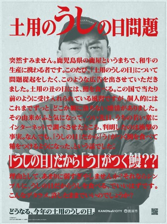 「KANOYeah!CITY」プロジェクトは、鹿屋市クリイエェェェーイティブディレクター池崎慧氏が、鹿屋市の魅力である豊かな食や住環境をより魅力的に発信するため、様々なディレクションをしていくというプロジェクトです。今回は、土用の丑の日に鰻を食べるべきか、牛を食べるべきかという大論争「土用のうしの日問題」がテーマとなっております。