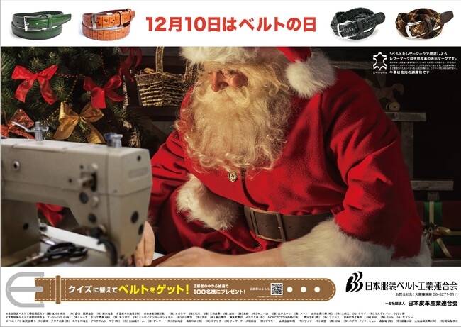 日本服装ベルト工業連合会(「東京服装ベルト工業協同組合」(所在地:東京都台東区)「大阪服装ベルト工業協同組合」(所在地:大阪府大阪市)は、実用性、ファッション性、 そしてギフト製品としても需要の高いベルトの良さを伝える目的として例年ベルトPR活動をしています。