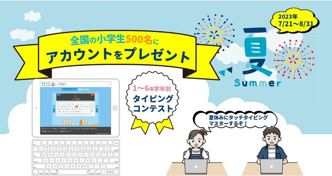 ナレッジ・プログラミングスクール(東京都世田谷区)は、夏休み期間に利用できる、成績管理つき「ナレッジタイピングfor school」の有料アカウントを500名の小学生にプレゼントします。