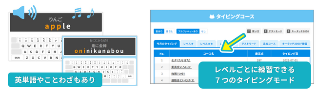 レベル別に150コース、「英単語」「都道府県名」「ことわざ」など、すべて音声つきで、飽きずに楽しく練習できます。