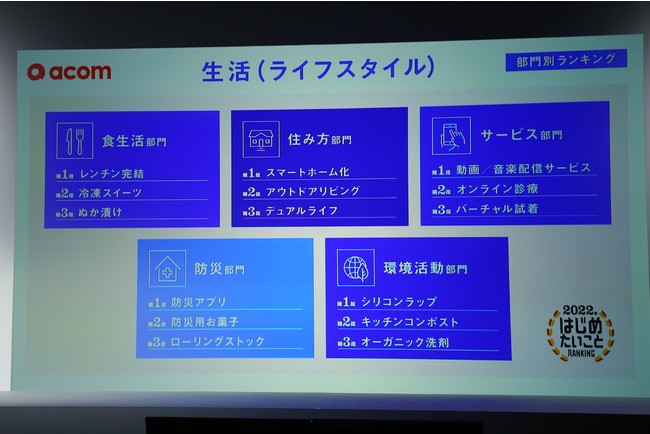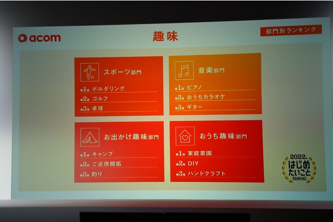 次に「\はじめたいこと見つけよう!/2022年 はじめたいことRANKING」の部門別結果を発表。