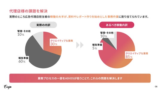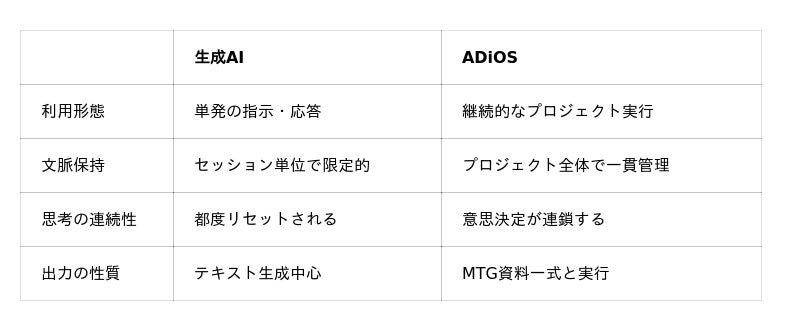 こうした課題に対して、生成AIの活用が進んでおりますが、難易度の高い戦略的な業務や一連の業務を一貫して遂行するまでには至っておらず、本来最も重要である「戦略設計」や「価値創出」に十分な時間を割けない状況が続いています。ADiOSはこれらの構造的課題を解消し、広告運用を“作業”から“戦略”へと進化させることを目的に開発されました。